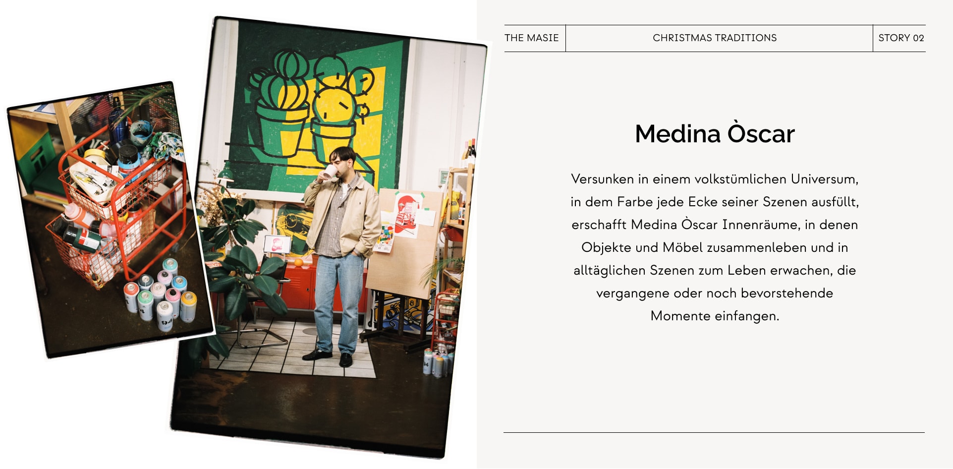 “Ich lasse mich mehr von wahrgenommenen Empfindungen und Emotionen leiten; meine Arbeit ist wie ein Katalysator oder Trichter für alles, was meine Seele nährt. Erinnerungen, Bilder, Geräusche und Düfte, die ein sinnliches Universum schaffen.”