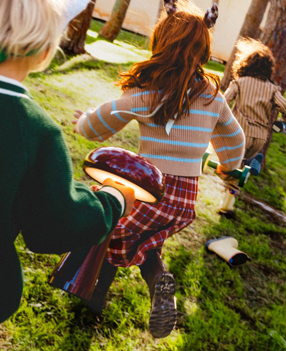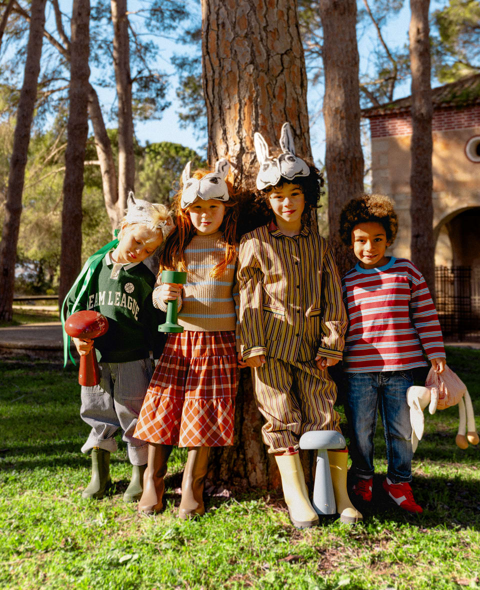 LA CAMPAÑA DE PASCUA DE THE MASIE TRANSFORMA UN INSTANTE COTIDIANO EN UNA ESCENA VISUAL SUSPENDIDA EN EL TIEMPO, DONDE MOBILIARIO, NATURALEZA Y DISEÑO CONVIVEN DE MANERA LÚDICA Y EXPRESIVA. CON UN ENFOQUE TEATRAL Y KITSCH, LOS NIÑOS DISFRAZADOS SE CONVIERTEN EN PROTAGONISTAS, INTRODUCIENDO MOVIMIENTO Y ESPONTANEIDAD, MIENTRAS UNA GRAN TELA PINTADA A MANO CREA UN UNIVERSO ONÍRICO QUE MEZCLA REALIDAD Y FICCIÓN.
